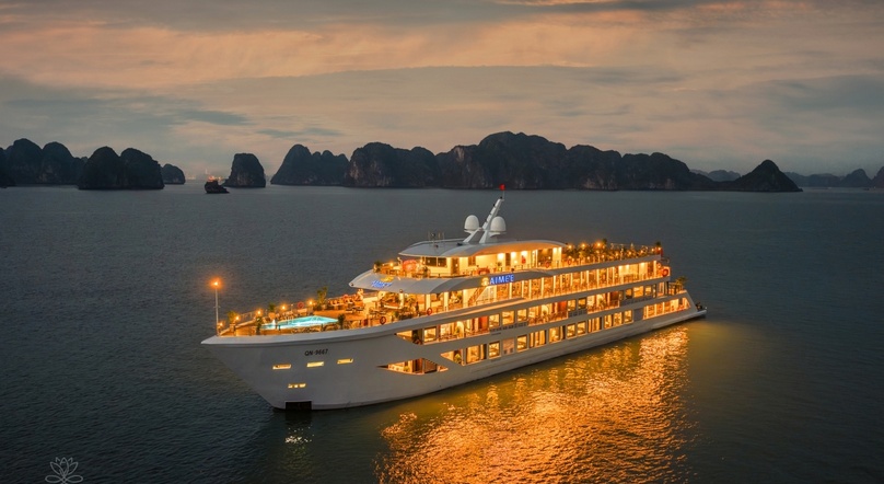 About to launch in November 2025, Aime'e Cruise represents the latest masterpiece from Bai Tho Junk, a reputable and experienced cruise company in Halong Bay. Featuring an elegant black-and-white color palette, the vessel seamlessly blends contemporary sophistication with Indochine heritage, creating an alluring presence on Vietnam's stunning natural wonder.