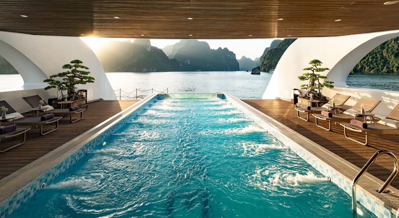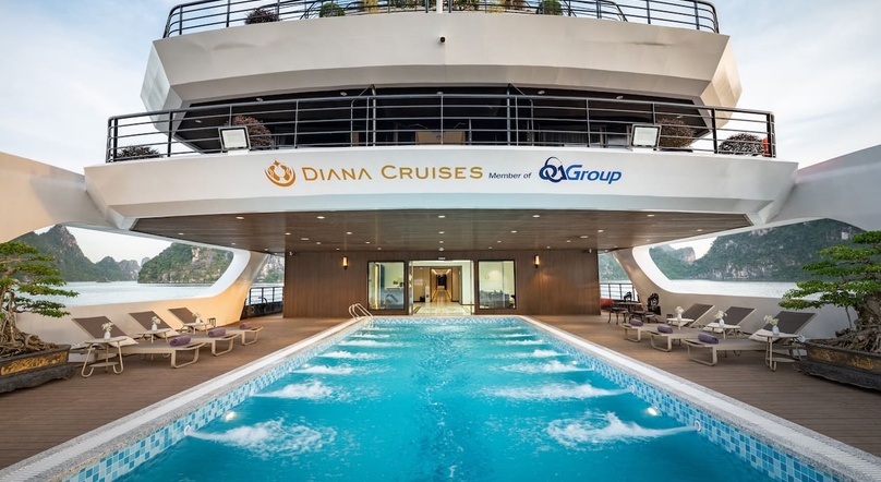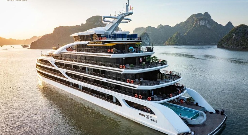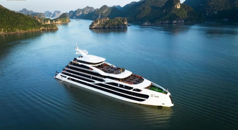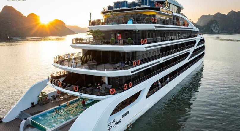 Launched in late 2025, Diana Cruise is one of the newest luxury cruises exploring Lan Ha Bay. This 6-deck vessel boasts an elegant design with 56 spacious rooms and a wide range of modern amenities for guests' relaxation and recreation.