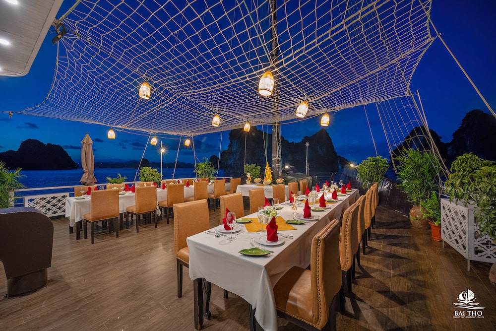 Ranging from $110 to $140 per person per night, budget cruises in Halong Bay typically offer 3-star-standard comfort. The cabins may not be too large or stylish but well-equipped with a private bathroom, bathroom amenities, and an ocean view window or balcony. Meals may not be fancy in presentation but the variety and taste are satisfying, with a blend of Vietnamese and fusion cuisine and available vegetarian options. Onboard facilities may be older and basic, such as a restaurant, bar, and sometimes a spa, but the atmosphere and experience are memorable.